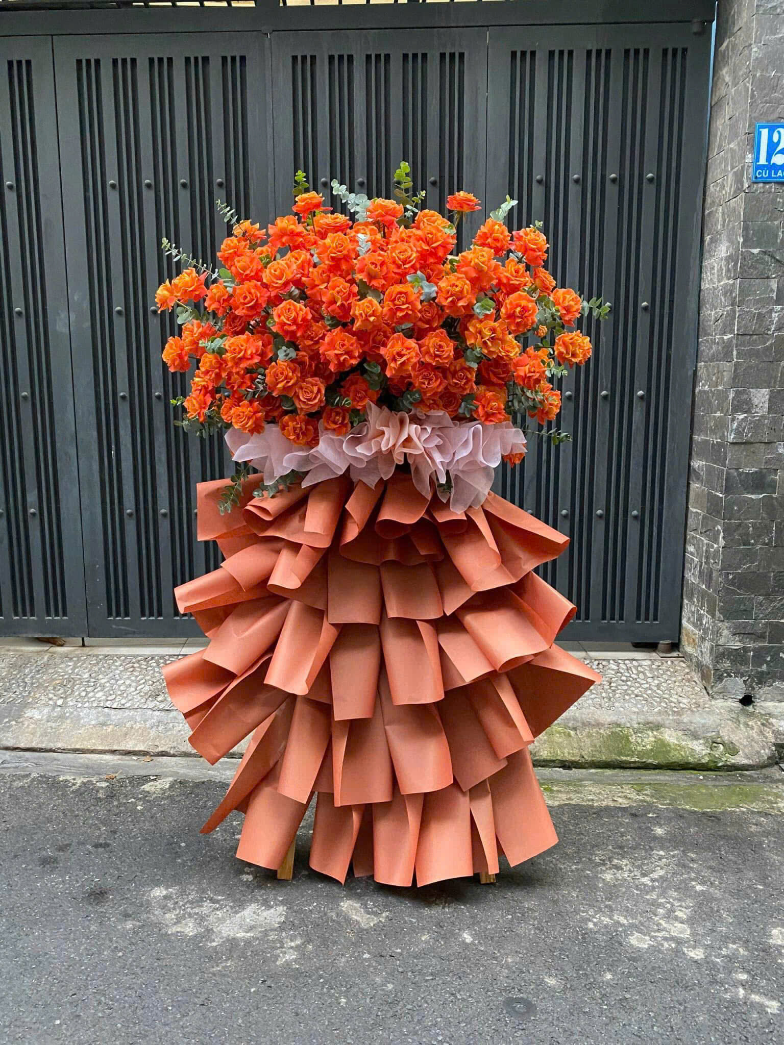 Mẫu hoa khai trương này phù hợp đặt trước cửa hàng, công ty hoặc showroom, giúp không gian thêm trang trọng và ấn tượng trong ngày khai trương.